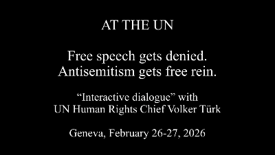 Anne Bayefsky delivering video statement to the U.N. Human Rights Council, February 27, 2026