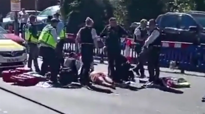 CCTV footage shows rescue teams at the scene of a stabbing attack in Golders Green; the suspect is detained by police. (X; used in accordance with Clause 27a of the Copyright Law)